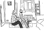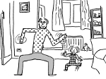 “Hello Daddy”, says Mimi as she looks out of the window. |