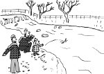 Daddy takes the pushchair and Mimi takes Lotti in her pushchair. |